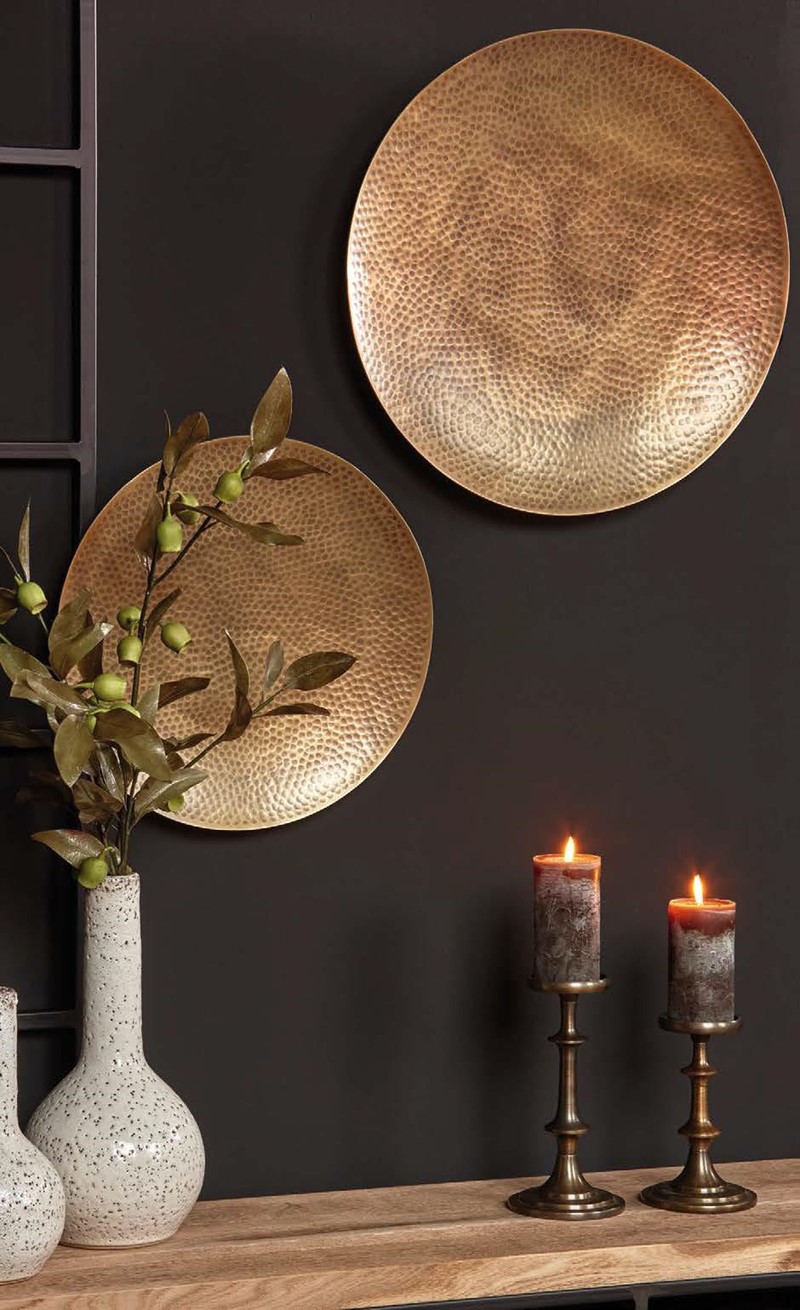 Dekorativ og røft veggdekor i banken aluminium med en antikk forgyllet finish. Velg mellom 2 forskjellige størrelser, kan også brukes som fat på et bord.