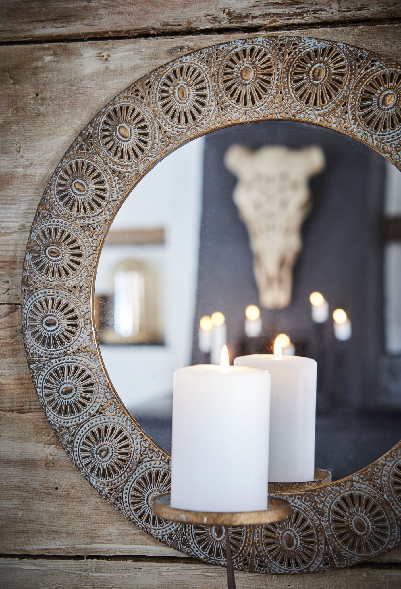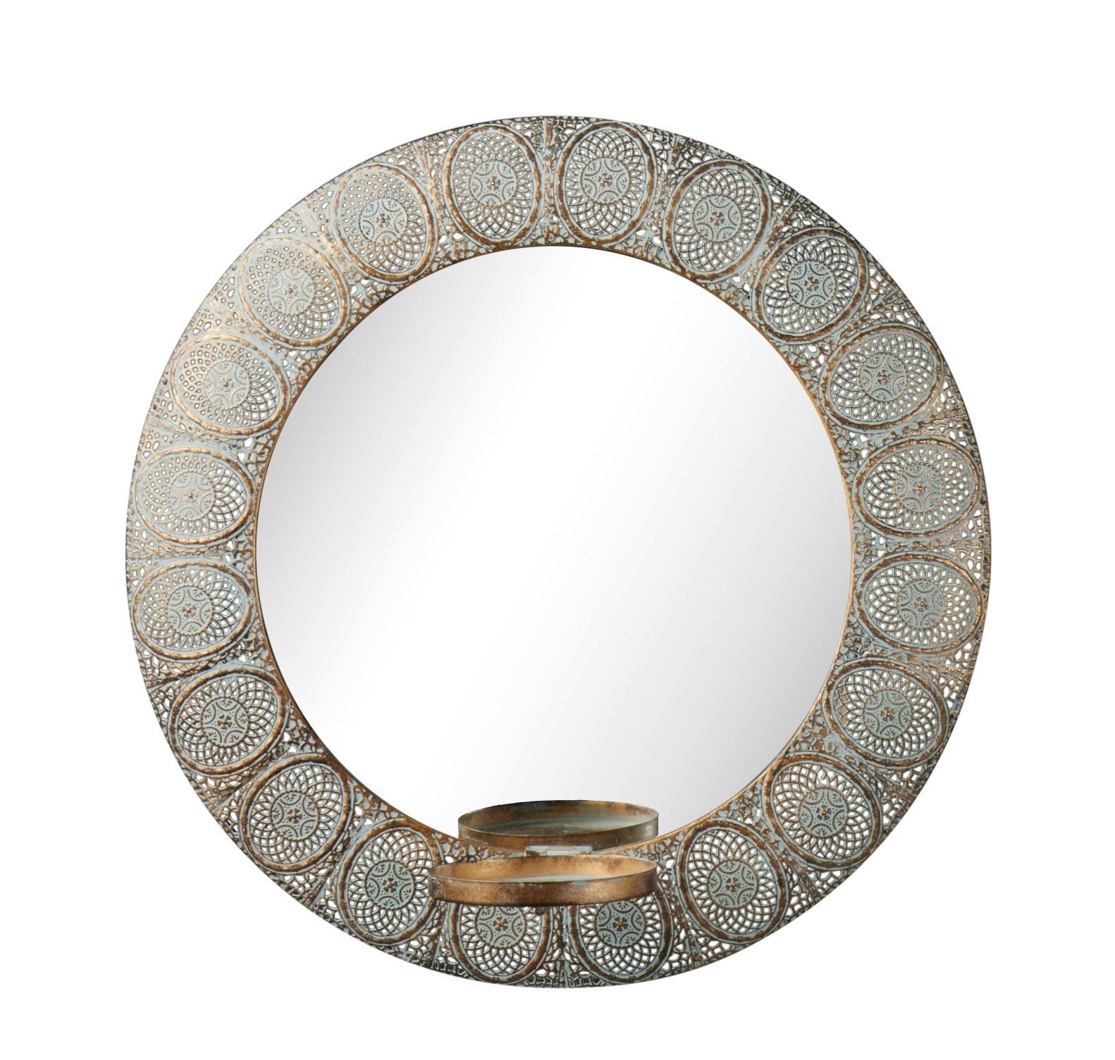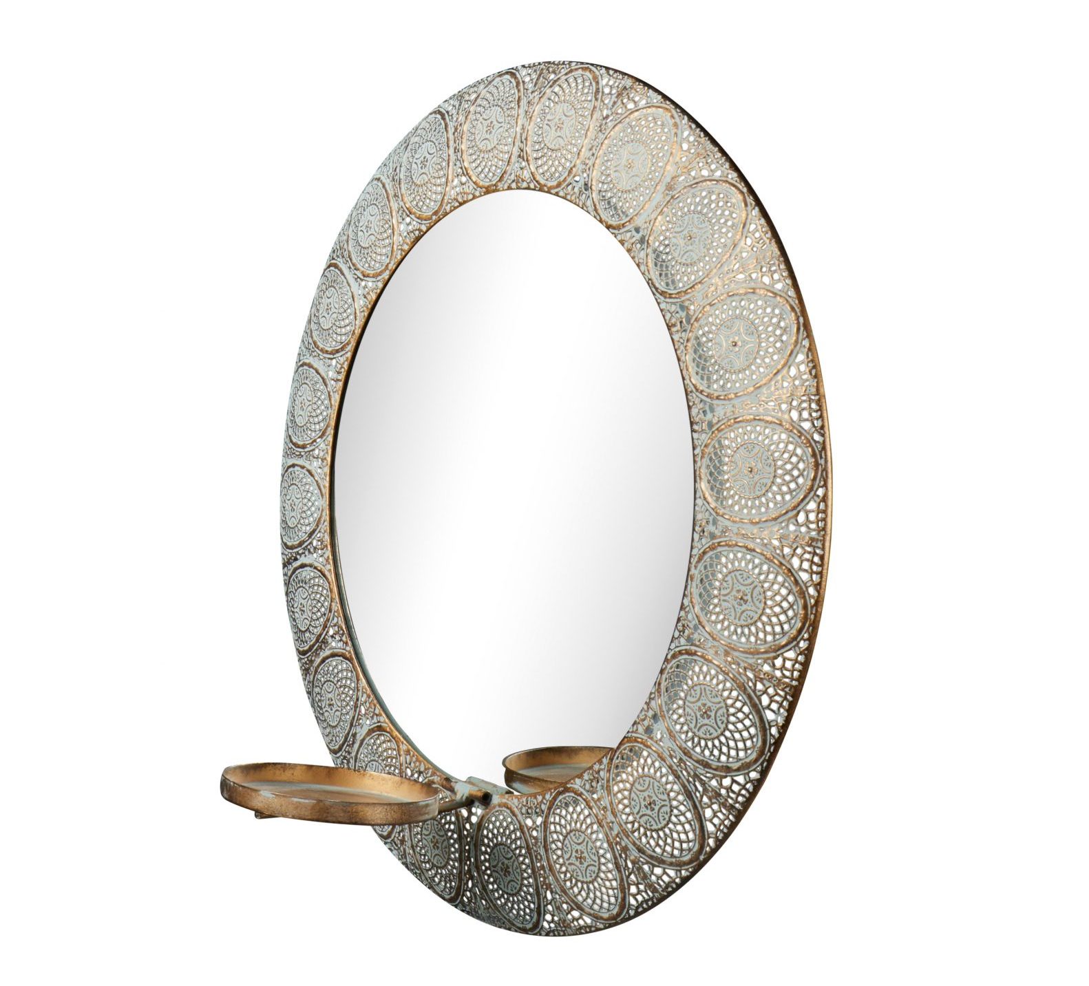 Dekorativ antik lysestake til vegg med speil. Perfekt for et lite kubbelys.