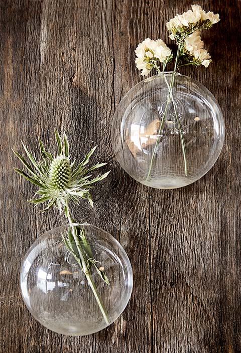 Dekorativ vase til vegg i glass. Dekorer en vegg med flere vaser med dine favoritt blomster, enkelt å fornye veggen etter sesongene.