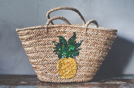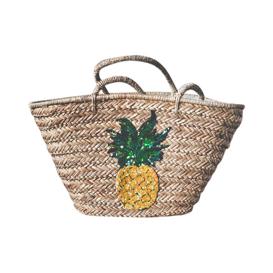 Nydelig og lekker stråveske med ananas motiv i paljetter, som kan brukes til flere anledninger.