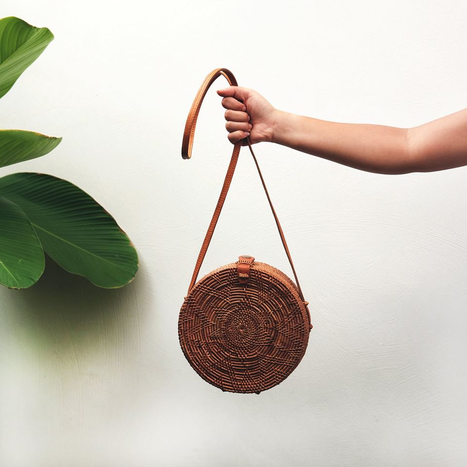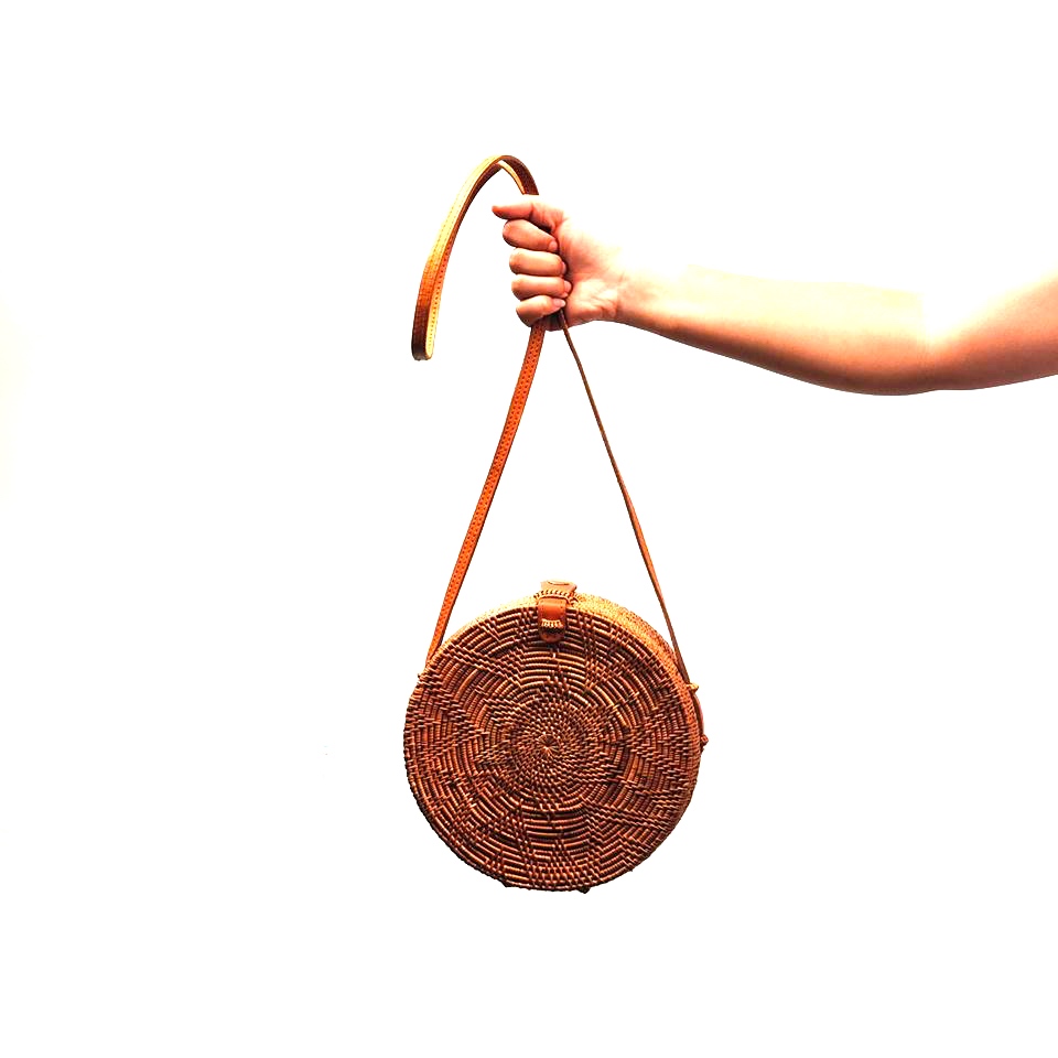 Håndlaget i Bali av naturmaterialer. Kommer med velour innvendig.