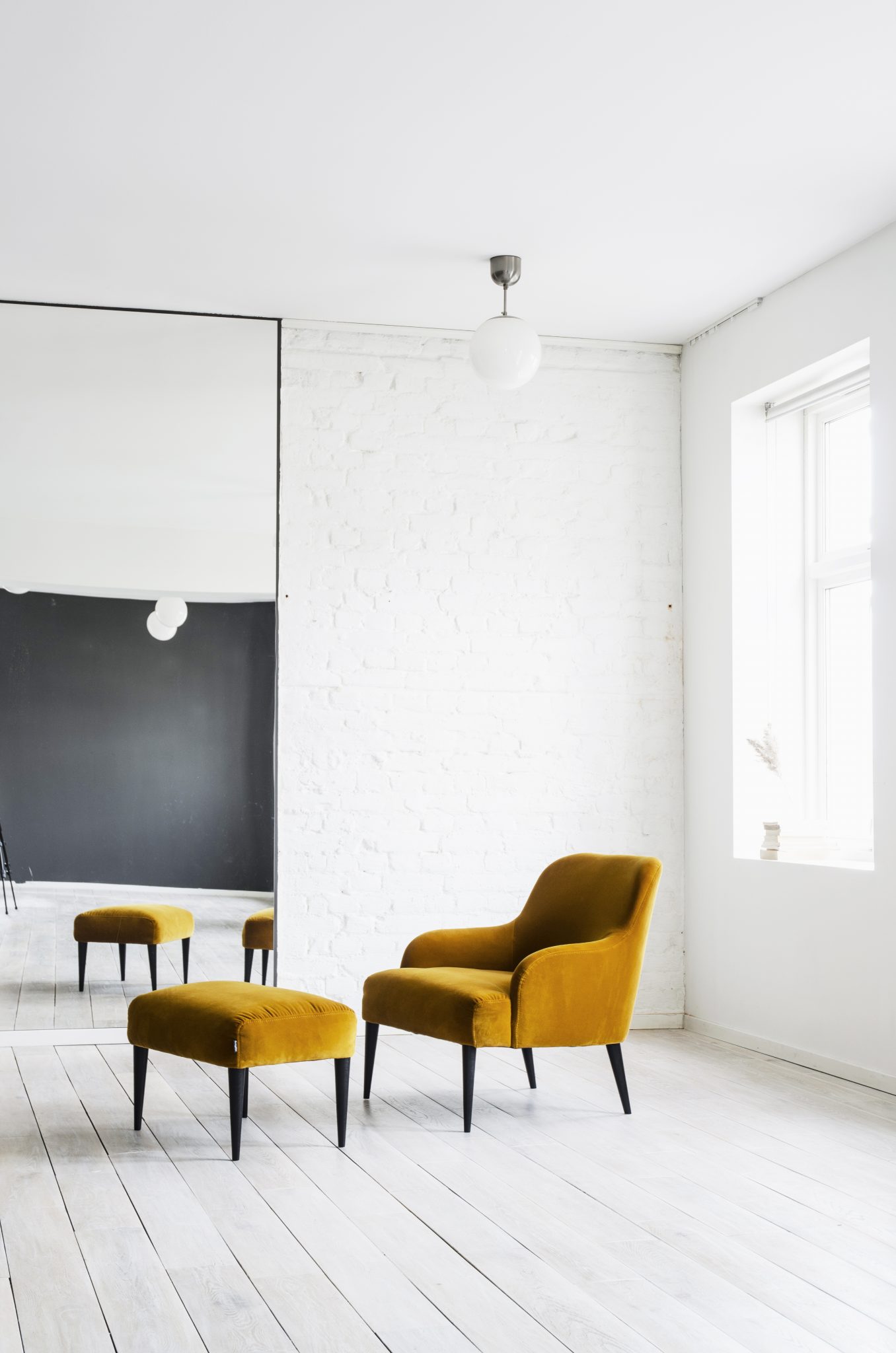 Vika ottoman fra det norske designmerket Ygg & Lyng. Vika er en myk og komfortabel ottoman med avrundede former og klare retro referanser. Heltre ramme og no-sag fjærer, fast sete i dun/kaldskum.