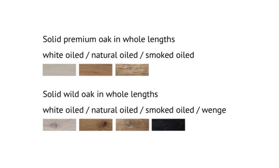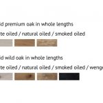 Man har to forskjellige valg i eik, ønsker man wild oak, som er mer liv i treverket, eller premium oak, som det ikke er så mye liv i treverket.