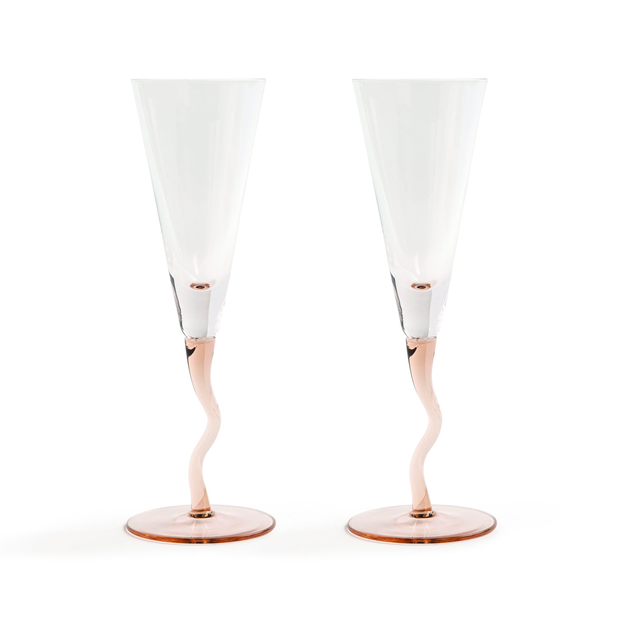 Feir et spesielt øyeblikk med disse elegante glassene! De er perfekte for glitrende champagne og ser fantastiske ut på ethvert bord på grunn av den myke, solide rosa fargen og den subtile formen. Tåler ikke oppvaskemarskin.