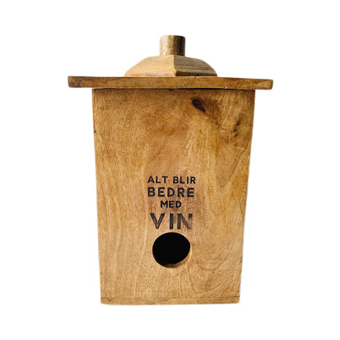 Vinholder i mangotre til pappvin «Hytta». Passer til 3 l. vinpose.