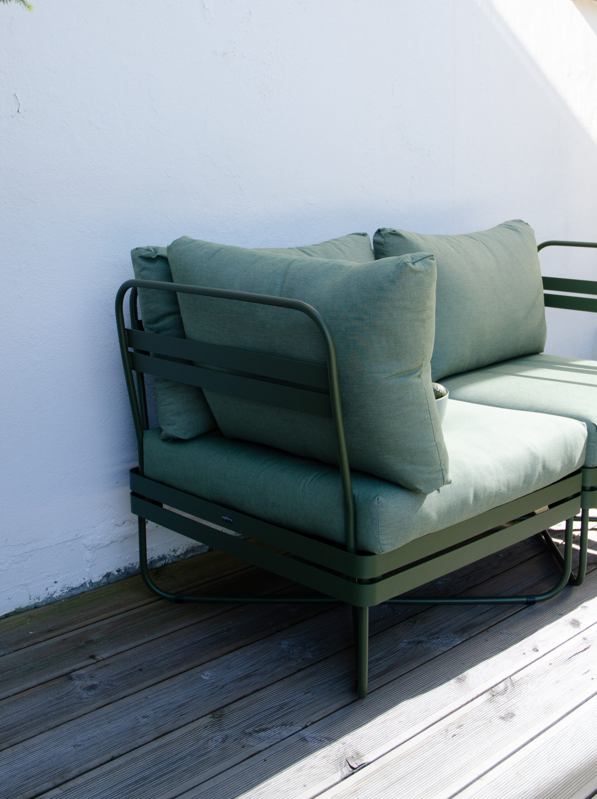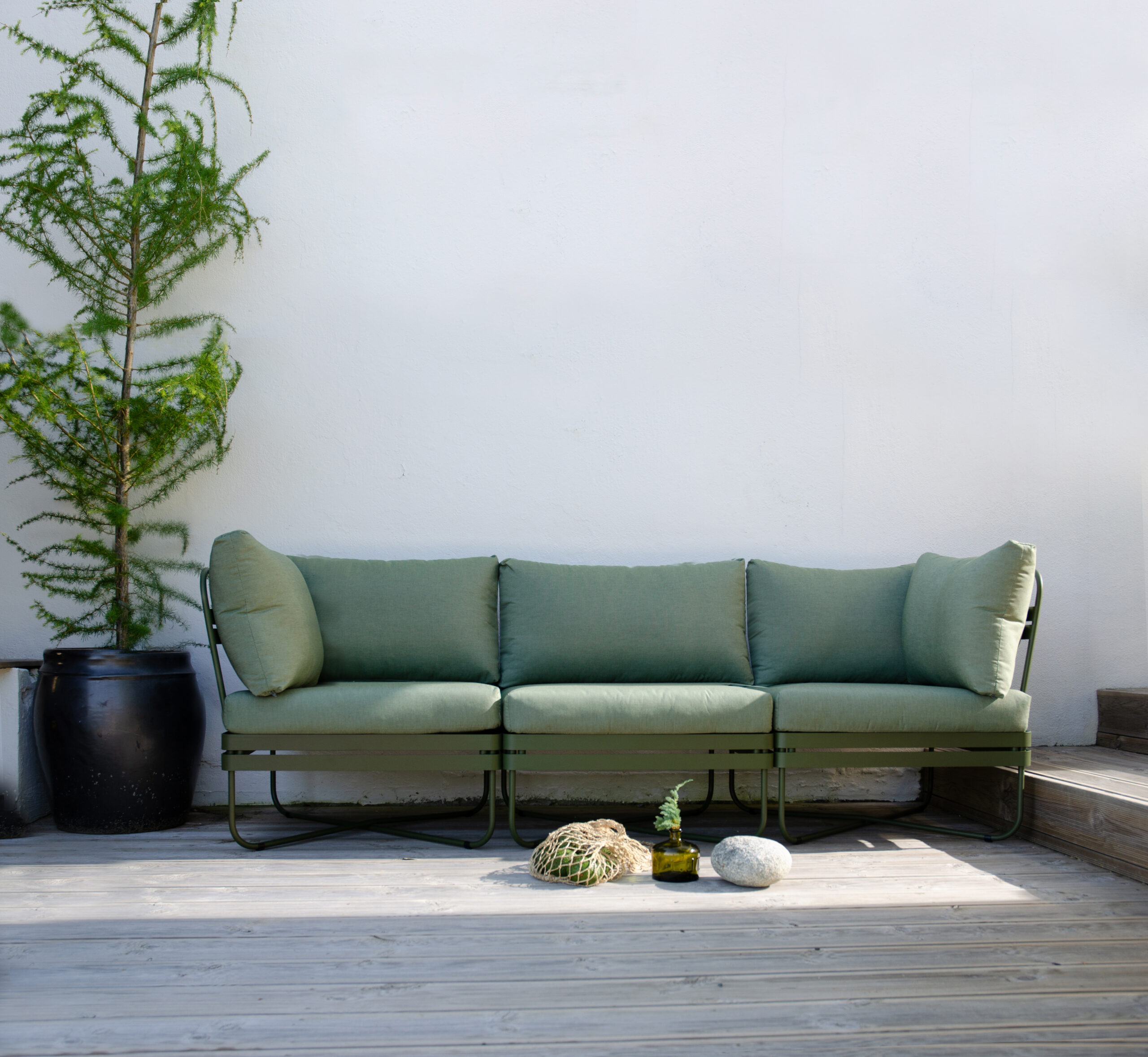 Med en blanding av stramme linjer og myke kurver har Bris et tidløst design. Konstruksjonen er laget av solid pulverlakkert rustfritt stål, men det er visuelt lett. De komfortable putene i slitesterke stoffer tåler elementene så vel som rengjøring.
