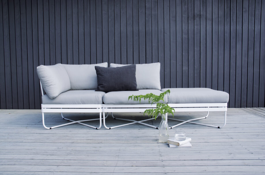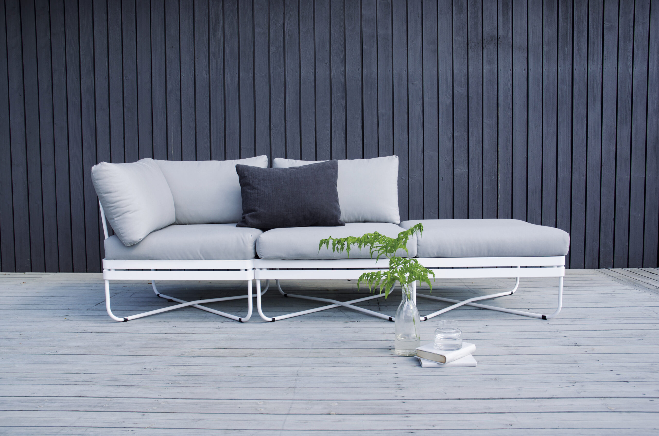 Med en blanding av stramme linjer og myke kurver har Bris et tidløst design. Konstruksjonen er laget av solid pulverlakkert rustfritt stål, men det er visuelt lett. De komfortable putene i slitesterke stoffer tåler elementene så vel som rengjøring