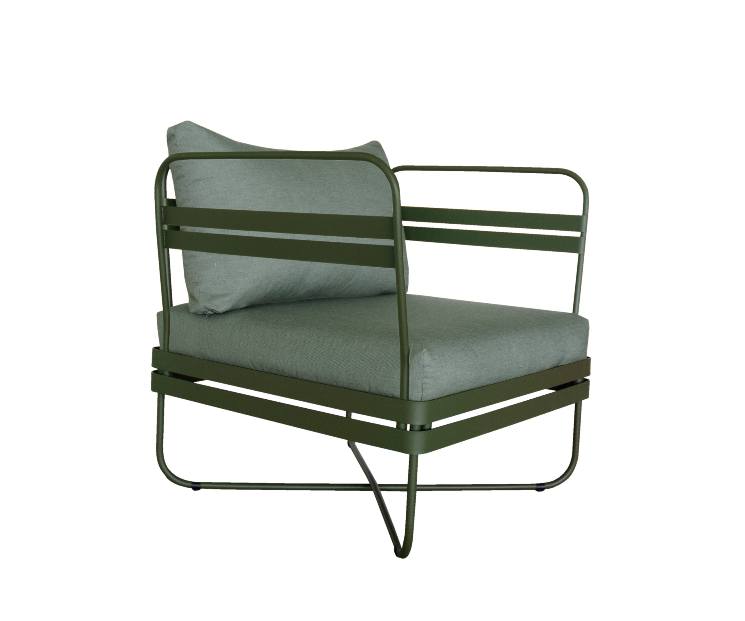 Med en blanding av stramme linjer og myke kurver har Bris et tidløst design. Konstruksjonen er laget av solid pulverlakkert rustfritt stål, men det er visuelt lett. De komfortable putene i slitesterke stoffer tåler elementene så vel som rengjøring.