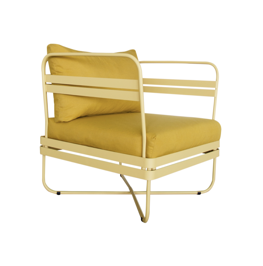 Med en blanding av stramme linjer og myke kurver har Bris et tidløst design. Konstruksjonen er laget av solid pulverlakkert rustfritt stål, men det er visuelt lett. De komfortable putene i slitesterke stoffer tåler elementene så vel som rengjøring.