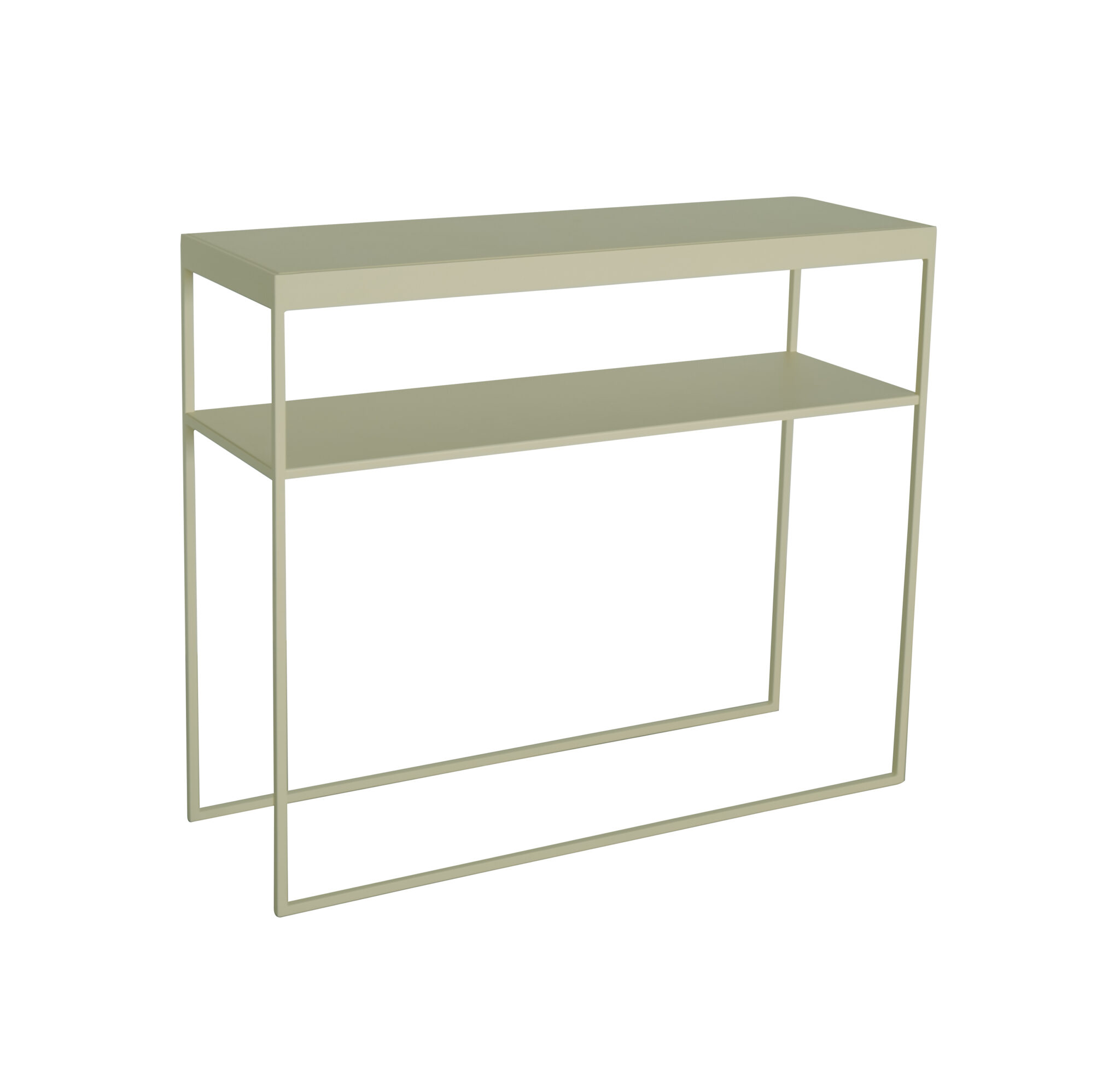 Med sin vendbare topp er konsollbordet helt fratatt unødvendige detaljer, og gjenstandene som er plassert på den spiller hovedrollen. Konsollbordet har en enkelhet som passer de fleste rom, og gjør det til et multifunksjonelt og tidløst møbel. Kommer er i farget metall, med vendbar og avtagbar metalltopp. Hylleplaten under er også avtagbar.