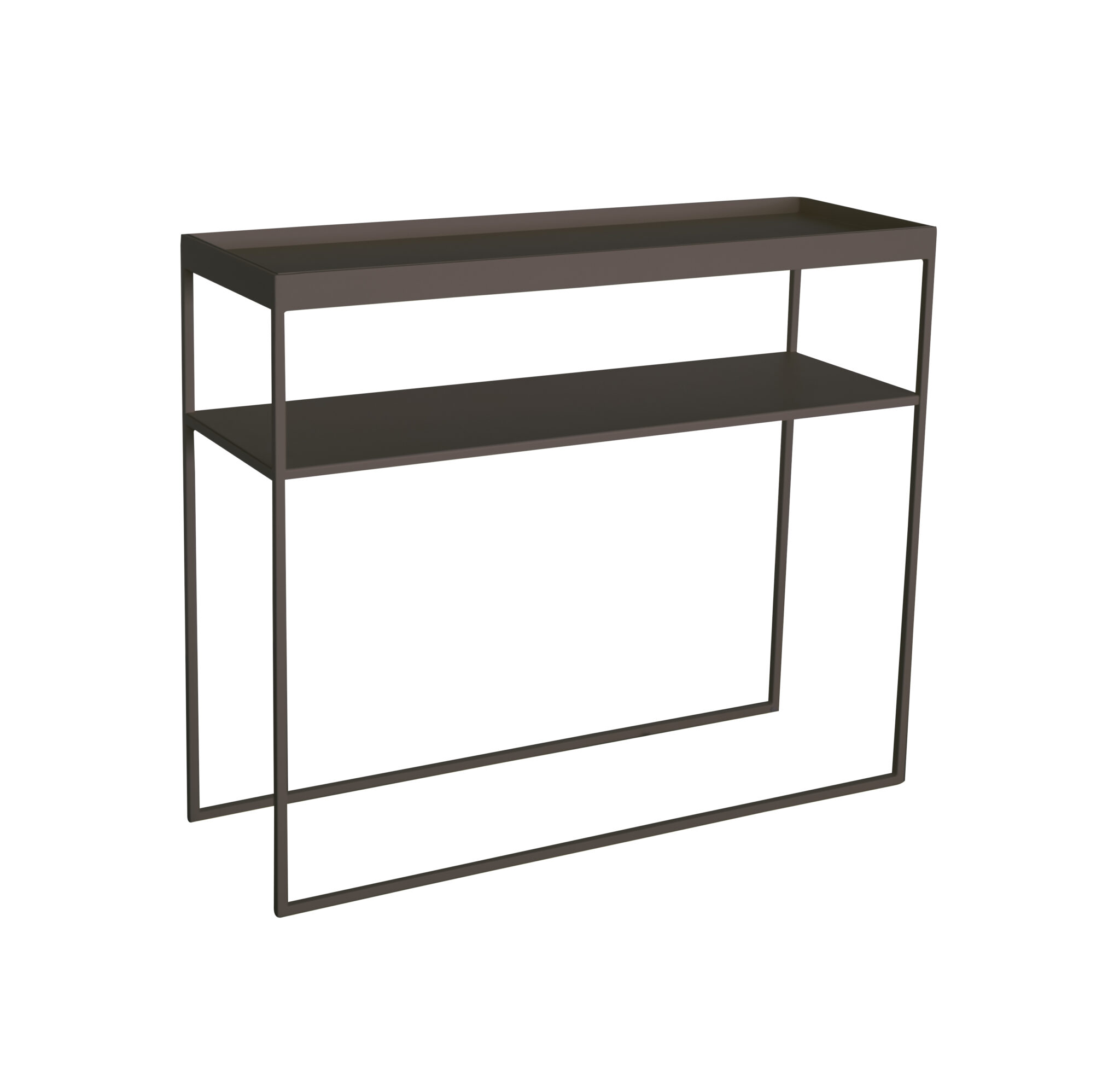 Med sin vendbare topp er konsollbordet helt fratatt unødvendige detaljer, og gjenstandene som er plassert på den spiller hovedrollen. Konsollbordet har en enkelhet som passer de fleste rom, og gjør det til et multifunksjonelt og tidløst møbel. Kommer er i farget metall, med vendbar og avtagbar metalltopp. Hylleplaten under er også avtagbar.