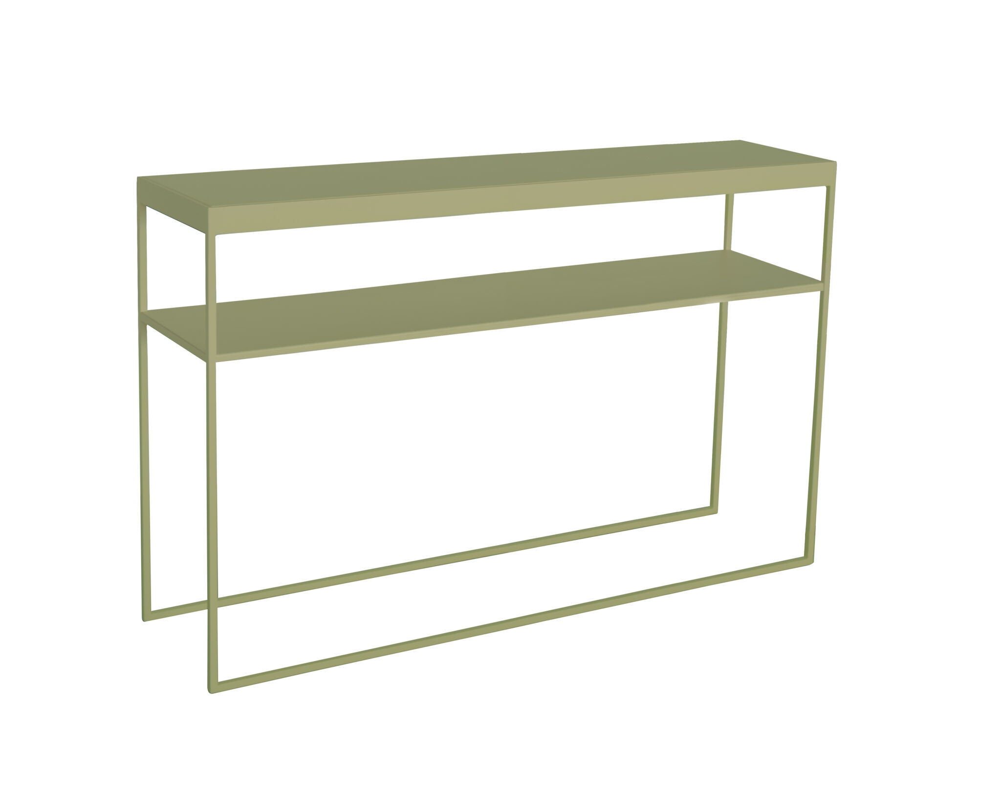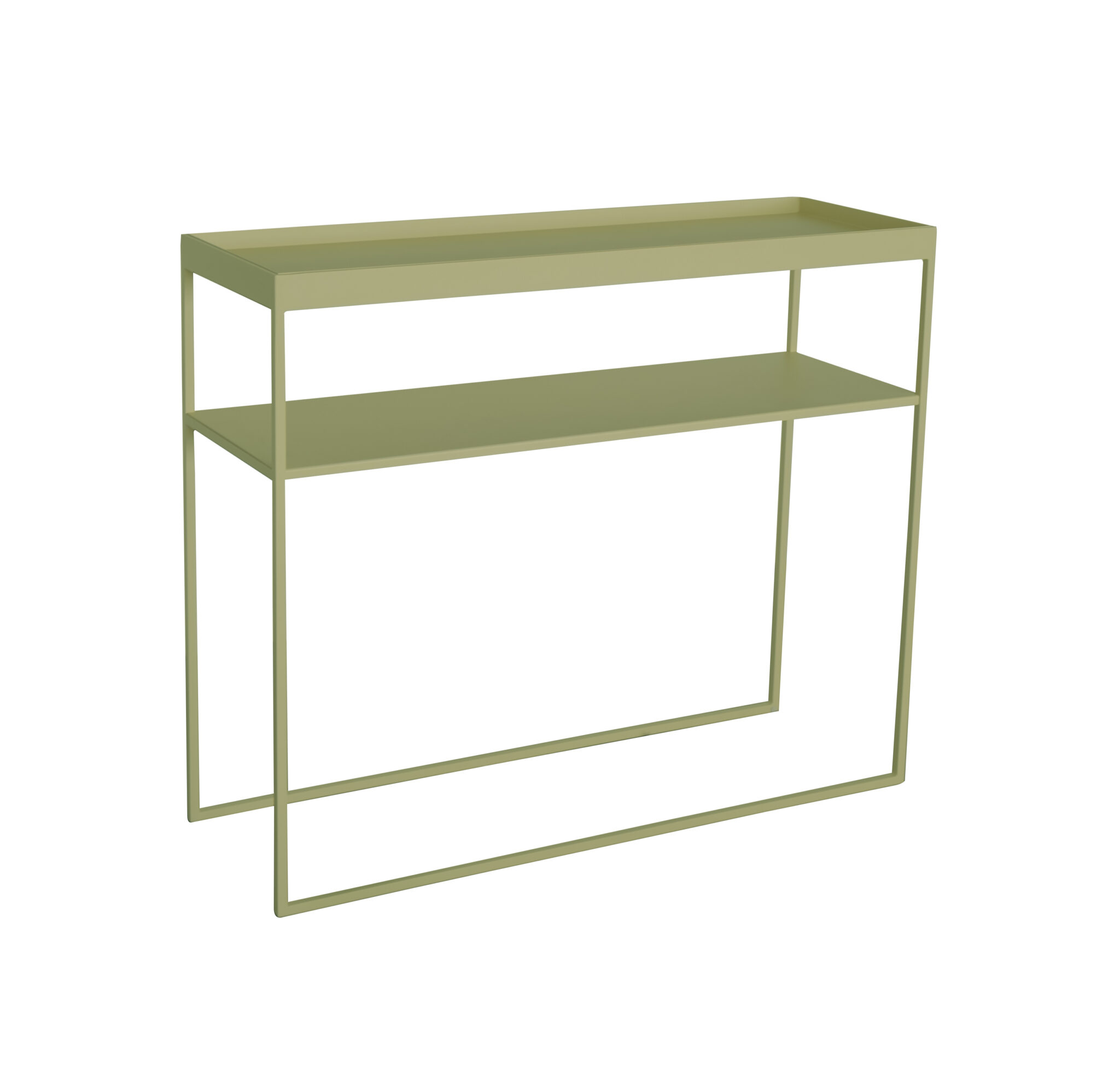 Med sin vendbare topp er konsollbordet helt fratatt unødvendige detaljer, og gjenstandene som er plassert på den spiller hovedrollen. Konsollbordet har en enkelhet som passer de fleste rom, og gjør det til et multifunksjonelt og tidløst møbel. Kommer er i farget metall, med vendbar og avtagbar metalltopp. Hylleplaten under er også avtagbar.
